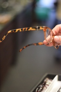 The atmosphere of the store gave an industrial feel with steel beems holding the eye glasses racks together and recycle rubber for the flooring. The knowledge and passion from the owners and workers gave insight about who the designers were and what the type of material some brands used such as, buffalo horn and perforated steel for design.